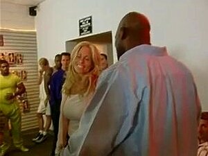 Busige Blondine schnallt sich für harten Analsex an. Busige Blondine macht sich bereit für harten Analsex in einem interracial Gang-Bang