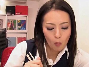 Japanische Büro-Schlampe mit verbundenen Augen fickt einen Stift